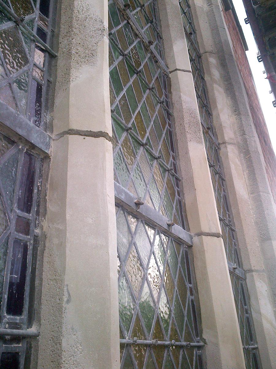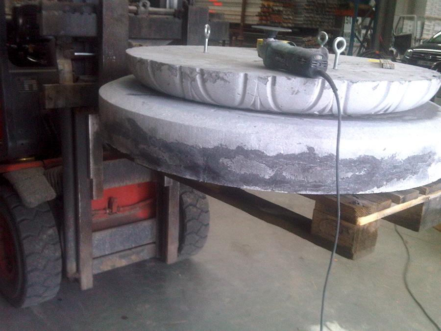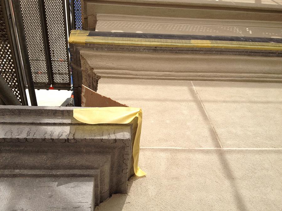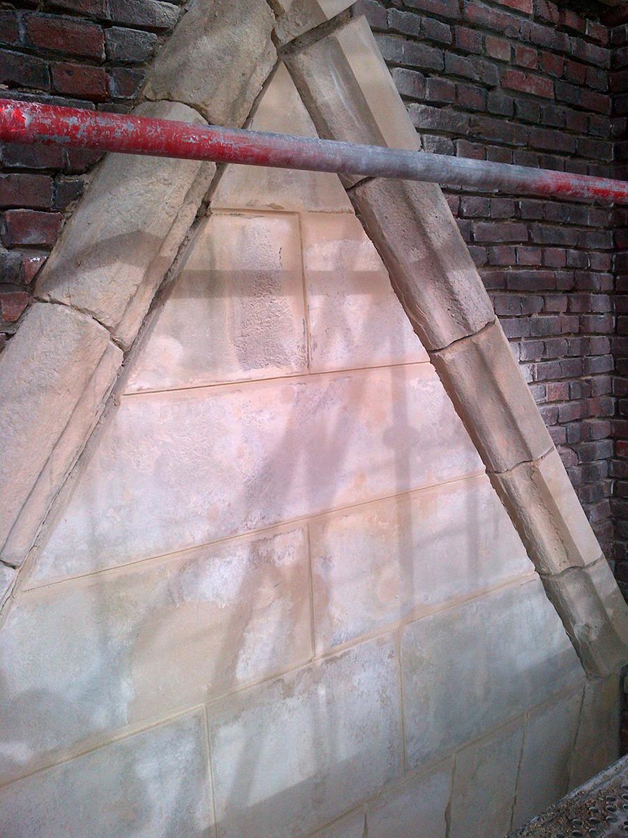 Door de invloed van weer en wind gaat een natuursteen in de tijd verweren soms met een ernstige schadebeeld tot gevolg. Om het gesteente niet volledig te vervangen en de kosten te beperken, gaan wij de verweerde vlakken herstellen met een minerale mortel. De minerale mortel is opgebouwd uit natuursteen en mineraal bindmiddel.